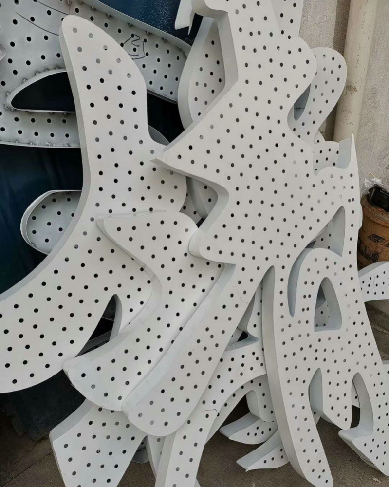 沖孔發光字人們有時又叫做LED沖孔發光字俗稱LED外露發光字,是使用鍍鋅板,鋁板等特殊的面板作為字體基板,通過對基板進行一系列的切割,沖孔,烤漆再安裝LED光源并且還要對字體筆畫進行拼裝焊接終才能形成發光的廣告標識。